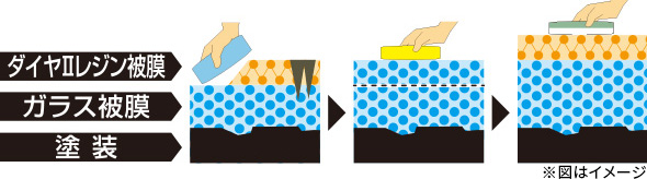 下部のガラス被膜を整え、表面のレジン被膜を入れ替えます。